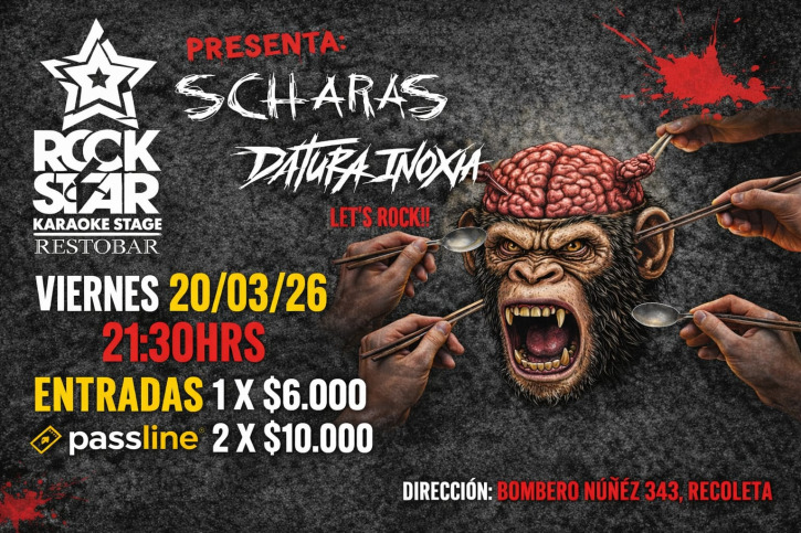 - Descripción: Una noche de descarga de adrenalina con la presentación en vivo de Scharas junto a la banda invitada Datura Inoxia. El local ofrece además un ambiente de restobar con happy hour y karaoke después de los shows en vivo.